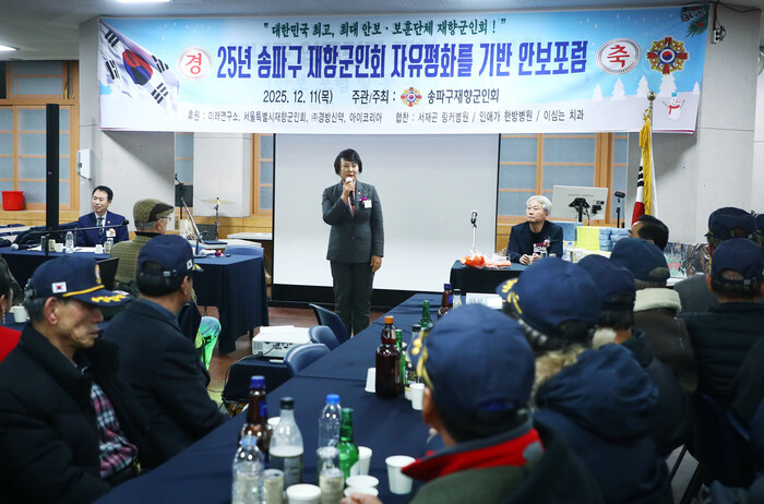 [시민일보 = 이대우 기자] 서울 송파구의회(의장 이혜숙)가 최근 아이코리아에서 개최된 ‘2025년 송파구재향군인회 업무평가대회 및 송년회’에 참석해 한 해 동안 지역 안보를 위해 힘써 온 향군 회원들을 격려했다.