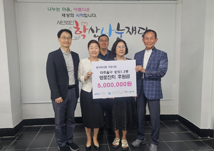 [인천=문찬식 기자] 인천 미추홀구 숭의1·3동 지역사회보장협의체는 최근 한국마사회 인천미추홀지사의 공모사업에 ‘숭의1·3동 경로잔치’가 선정돼 기부금 500만원을 전달받았다.