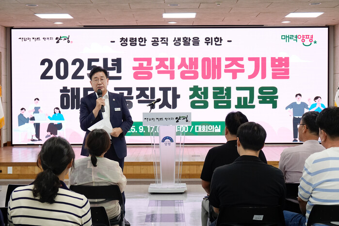 전진선 양평군수는 “이번 교육 교육을 통해 직원들이 생활 속 청렴을 실천하여, 청렴한 조직 문화가 자리잡기를 바란다”며, “직원 개개인이 청렴한 공직사회를 위한 척도가 되어, 청렴과 소통의 양평을 만드는 계기가 되길 바란다”고 당부하였다.