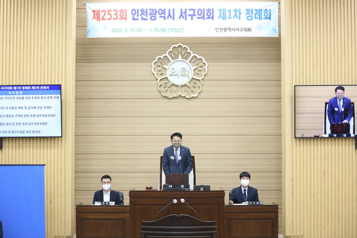 [인천=문찬식 기자] 인천 서구의회가 최근 제253회 제1차 정례회 제3차 본회의에서 상정 안건들을 처리하고 폐회했다.