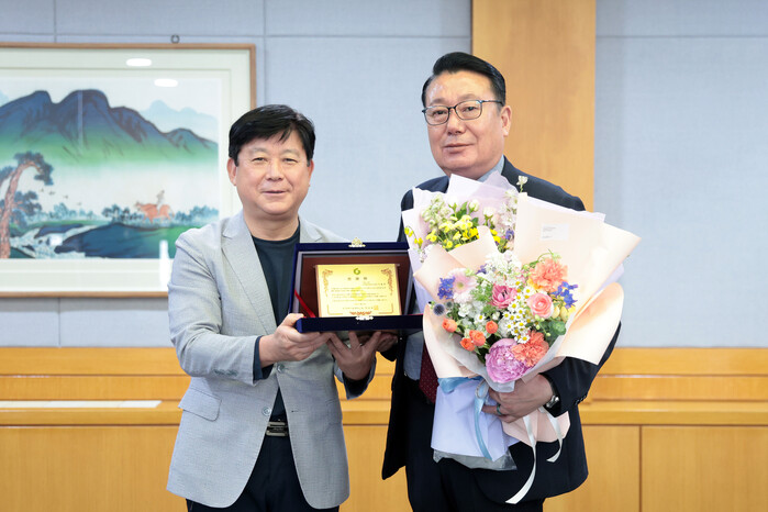| ▲ 시흥시의회 이봉관 자치행정위원장이 5월 23일 경기과학기술대학교로부터 감사패를 수여받았다 /사진제공=시흥시의회 |