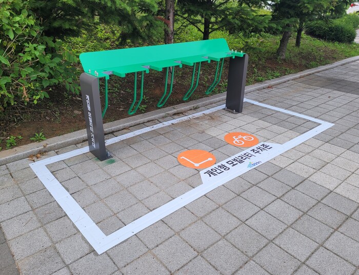 시는 지난 4월부터 민간업체의 개인형 이동장치(PM) 주ㆍ정차 위반 문제를 해결하기 위해 주차거치대와 주차라인 등 개인형 이동장치 전용 주차장을 설치하고 있다.