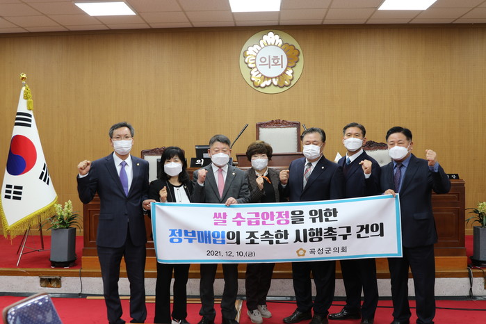 [곡성=강승호 기자] 전남 곡성군의회가 최근 열린 제250회 정례회에서 김을남 의원이 대표 발의한 양곡관리법에 근거한 쌀 수급안정을 위한 정부매입(시장격리)의 조속한 시행촉구 건의안을 만장일치로 채택했다고 14일 밝혔다.