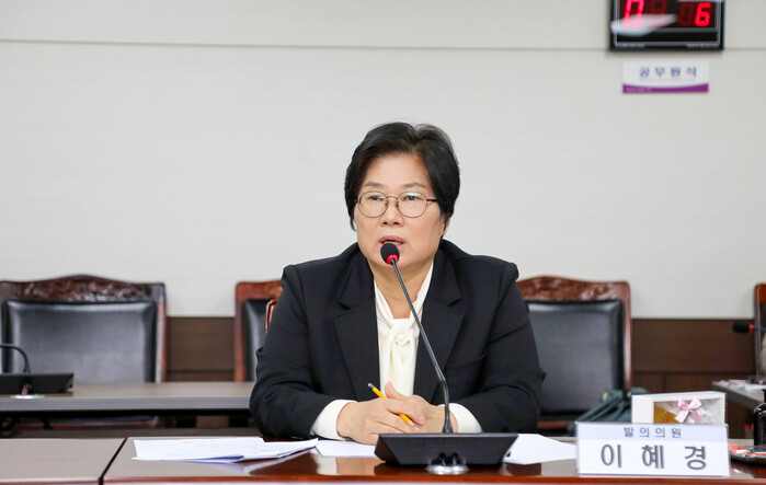 | ▲ 안산시의회 이혜경 의원이 지난달 25일 제294회 제2차 정례회 문화복지위원회에서 자신이 발의한 ‘안산시 중증장애인생산품 우선구매 촉진 조례안’에 대해 설명하고 있다 /사진제공=안산시의회 |