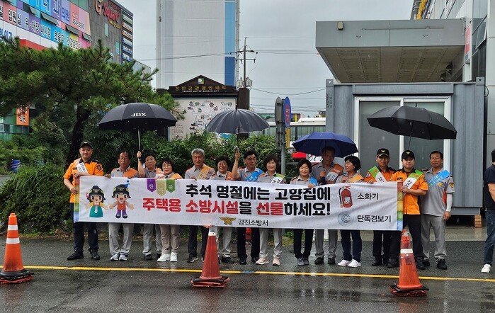 [강진=정찬남 기자] 전남 강진소방서(서장 최기정)는 다가오는 추석 명절을 맞아 15일 강진여객버스터미널에서 주택용 소방시설 선물하기 홍보 캠페인을 실시했다.