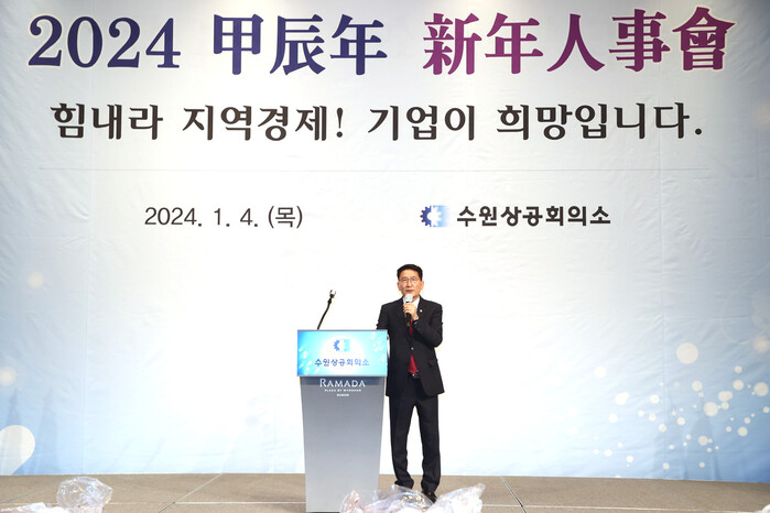 [수원=임종인 기자] 김기정 경기 수원시의회 의장이 최근 라마다프라자수원호텔에서 열린 2024년 수원상공회의소 신년인사회에 참석했다.