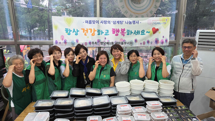 한편 행당제1동 새마을부녀회는 18일 동주민센터 1층 옹달샘에서 지역내 취약계층을 위한 ‘초복 삼계탕 나눔 행사’를 진행했다. 이날 행사에는 새마을부녀회 회장과 10여명의 회원들이 참석해 지역내 취약계층 80가구에 따뜻한 삼계탕과 김치를 전달했다.