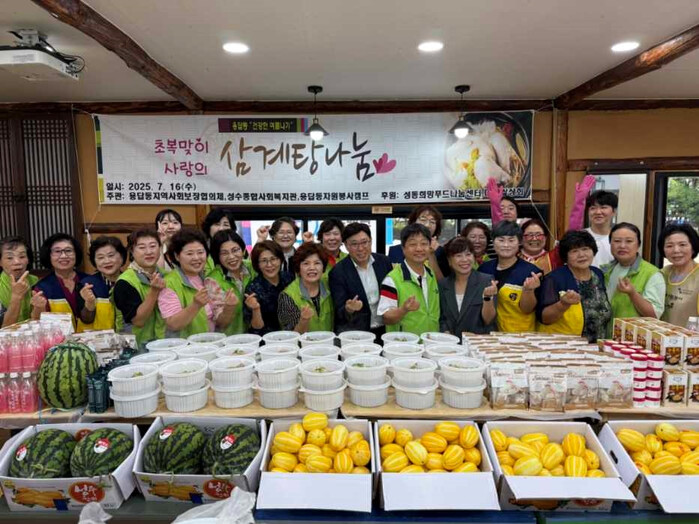 이번 행사에서는 한방삼계탕, 과일·음료뿐만 아니라 선물까지 가득 준비했으며, 성동희망푸드나눔센터 및 성동구자원봉사센터에서 후원물품까지 더해 예년보다 알차고 풍성하게 구성했다.