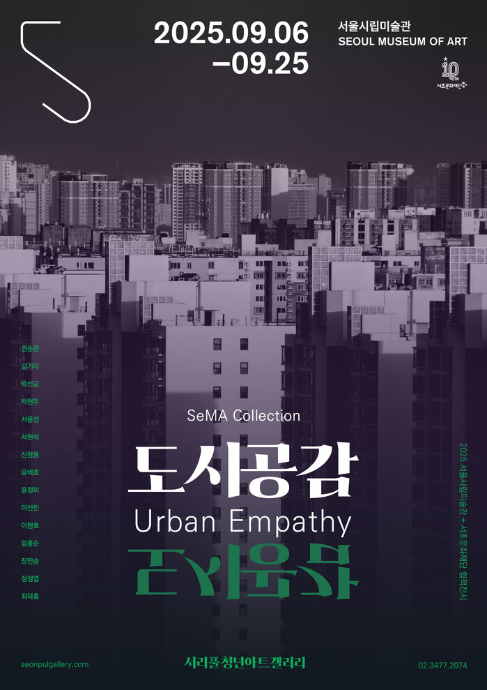 이번 전시 ‘SeMA Collection: 도시공감’(Urban Empathy)은 우리가 살아가는 터전인 ‘도시’를 주제로, 장소를 둘러싼 맥락과 환경을 진단하며 그 속에서 상생과 공감의 가치를 새롭게 탐구한다. 회화, 사진, 미디어 등 다양한 장르의 작품 15점을 선보이며, 도시 풍경에 담긴 의미와 현대인의 일상적 경험을 조명하는 동시에 성장과 발전의 이면에서 소외된 존재와 가치들을 성찰한다.