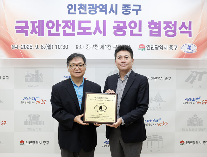 인천시 중구(구청장 김정헌)는 지난 8일 중구청 구청장실에서 ‘국제안전도시 공인 협정식’을 열고 인증을 공식화했다.