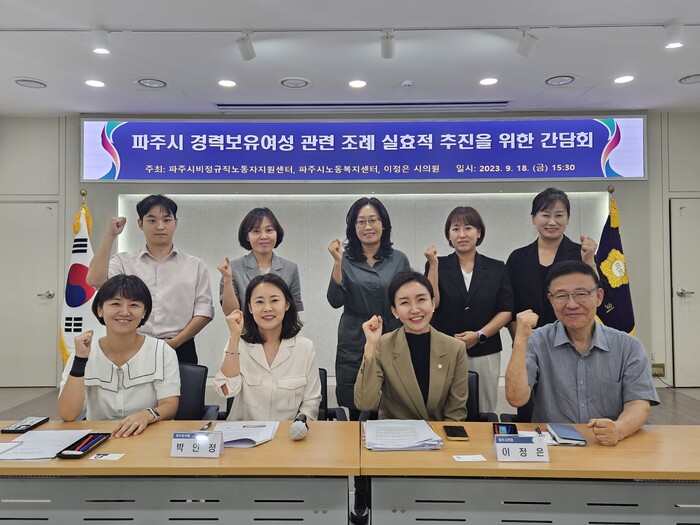 21일 시의회에 따르면 이정은 의원을 비롯해 파주시비정규직노동자센터, 파주시노동복지센터, 인터넷 커뮤니티 및 파주시 담당부서 관계자 등이 참석한 이날 간담회에서는 경력보유여성 관련 조례의 실효적 추진을 위한 다양한 의견 교환과 함께 여성권익증진에 대한 발전 방향이 논의됐다.