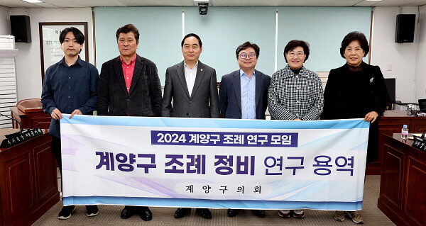 [인천=김형만 기자] 인천시 계양구의회 의원연구단체인 ‘계양구 조례 정비 연구 모임’(대표의원 조덕제)은 10월 28일 계양구의회 5층 세미나실에서 계양구 조례 정비 연구 용역 중간보고회를 개최했다고 밝혔다.
