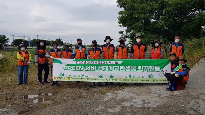 | ▲ 광주광역시, 광주천 일대 생태계교란 생물 퇴치사업 본격 추진 기념촬영 / 광주광역시 제공 |