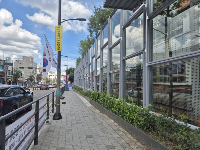 | ▲ 성동구 무학중학교 인근에 신규 설치된 투명 방음벽 모습. (사진=성동구청 제공) |