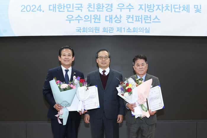 [시민일보 = 이대우 기자] 서울 종로구의회 정재호 의원과 이광규 의원이 최근 국회의원회관 제1소회의실에서 ‘2024 대한민국 친환경 우수의원 대상’을 수상했다.