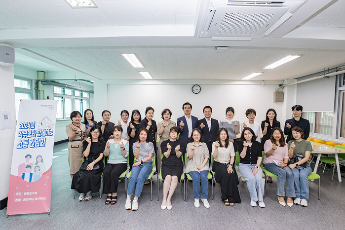 영등포구는 11일 당산서중학교에서 2024년 학부모와 함께하는 소통 간담회를 진행했다. 사진은 간담회에 참석한 최호권 구청장(뒷줄 오른쪽 다섯 번째)이 참여자들과 기념촬영을 하고 있는 모습. (사진=영등포구청 제공)