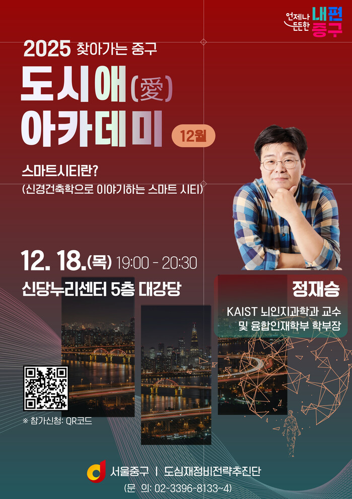 이번 아카데미 참여를 원하는 주민은 중구청 홈페이지(QR코드)나 서울시 공공서비스 예약사이트를 통해 신청하면 되며, 선착순이다.