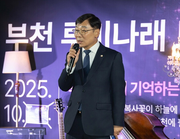 | 김병전 의장이 부천 루미나래 도화몽 개장식에 참석, 축사를 하고 있다. (사진=부천시의회) |