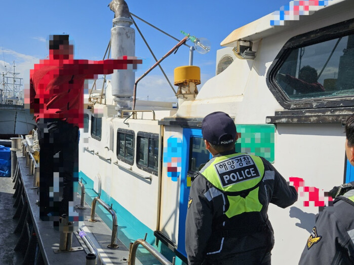| ▲ 어선에 승선해 현장을 점검하는 목포해경(출처=목포해경) |