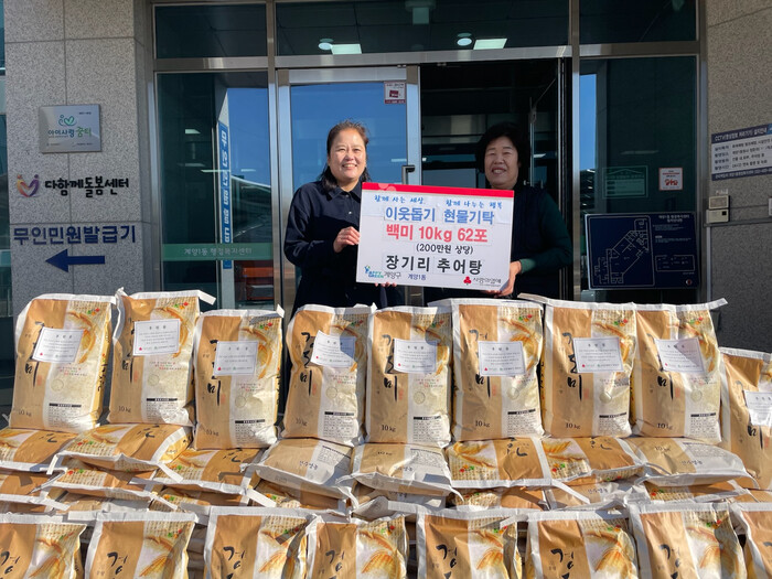 [인천=문찬식 기자] 인천 계양구 계양1동(동장 박미라)은 지난 9일 계양1동 소재 장기리추어탕(대표 김음전)이 설 명절을 맞아 200만 원 상당의 백미 62포를 기탁했다고 밝혔다.