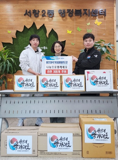 후원은 용인대국가대표 태권도장 원아들이 십시일반으로 라면을 모아 마련됐다.