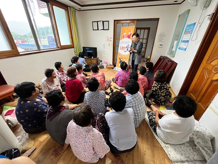 | ▲ 강진군, 지난 12일 옴천면 연동마을 어르신들 대상 ‘내·안·愛’(내가 안아주고 사랑할게)프로그램 운영 / 강진군 제공 |