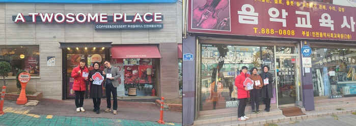 이번에 참여한 가게는 2호점부터 3호점까지로 ▲투썸플레이스 인천제물포역점(대표 유명희), ▲음악교육사(대표 정완희)이며, 모두 매월 일정 금액을 기부하며 지역사회 어려운 이웃을 돕는 나눔 실천에 동참하게 됐다.