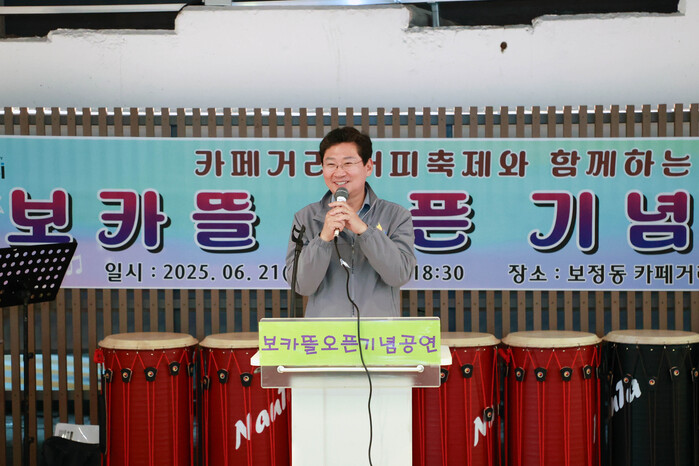 이 시장은 또 보정동 카페거리 인근에서 축제에 맞춰 개최된 보정동 주민자치위원회 주관 '보카뜰 오픈 기념 작은 음악회'에도 참석해 공연을 지켜보며 응원했다.