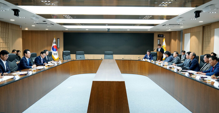 | ▲ 김영록 전라남도지사가 4일 전남동부지역본부 나철실에서 동복천댐 주민의견수렴회 관련 주민 면담을 하고 있다.(출처=전남도) |