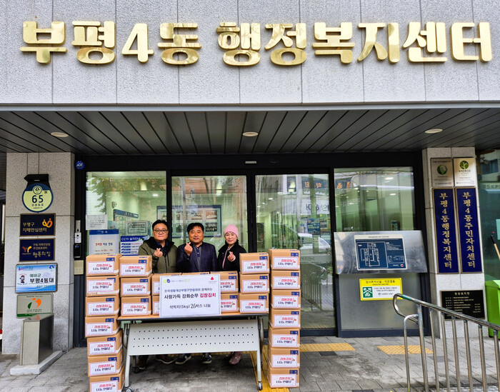 윤이수 부평4동장은 “지역 농산물을 활용한 따뜻한 나눔이 어려운 이웃들에게 큰 힘이 되길 바란다”며 “앞으로도 어려운 이웃들에게 더 많은 손길이 전달될 수 있도록 최선을 다하겠다”고 전했다.