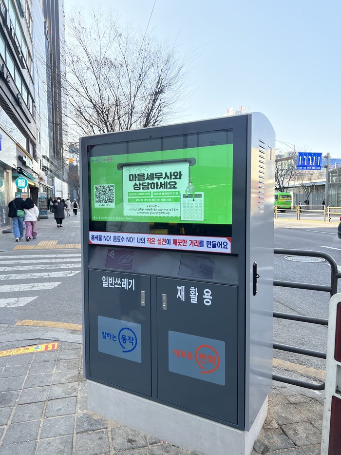 가로 휴지통은 높이 160㎝ 폭 65㎝의 회색 박스 모양으로 이수역, 사당역, 장승배기역 지하철역 출구와 숭실대역 인근 버스 승강장 등 10곳에 설치됐다.