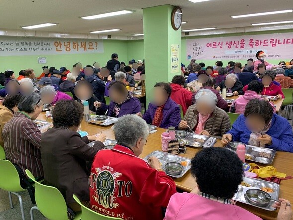 경로식당은 지역내 노인들의 따뜻한 한끼 식사를 대접하기 위해 현재 지역내 중국 식당인 독도성을 필두로 20여개의 자원봉사자 단체가 식사 준비부터 배식, 테이블 청소를 진행해 지역 내 노인들의 결식을 예방 실천하고 있다.