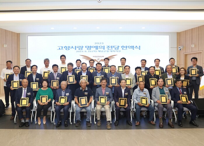 명현관 해남군수는 “소중한 시간과 기부금을 들여 고향사랑을 몸소 실천해주신 기부자 여러분의 이름을 기념하고, 군민들과 함께 감사를 전하기 위해 명예의 전당을 조성했다”며“해남발전을 위해 아낌없는 사랑을 베풀어주신 여러분의 뜻을 받들어 더 살맛나고 행복한 해남을 만드는데 힘을 모으겠다.”고 전했다.