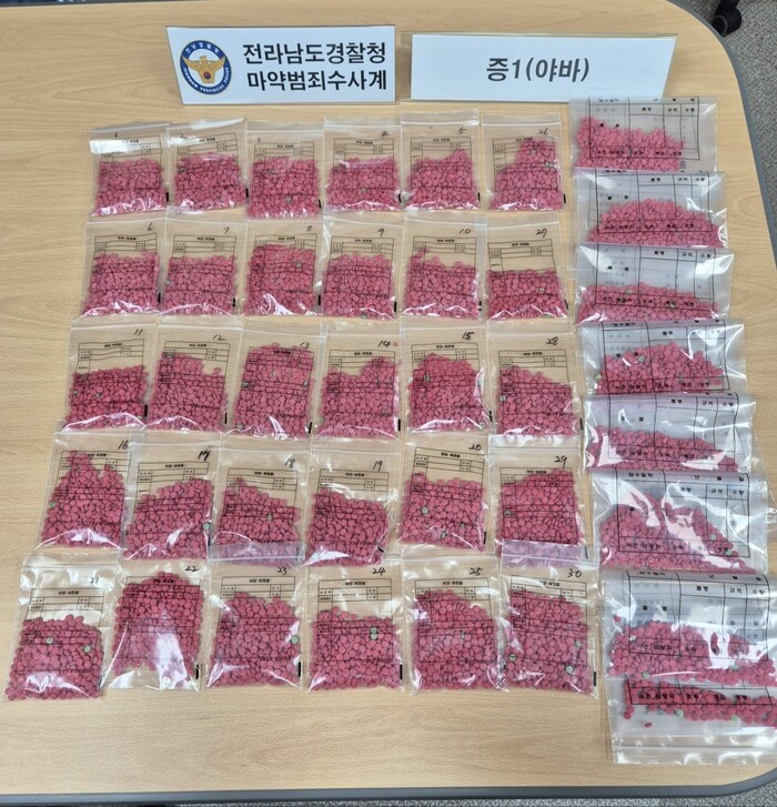[남악=황승순 기자]전남경찰청(청장 모상묘) 형사기동대(마약범죄수사계)는, ’24. 6월경 야바 2만 정을 국내로 밀반입한 피의자와 국내 총책 등 마약 판매 및 투약사범 28명을 강원⸱대구⸱경남·경북·전남 등 전국 각지에서 검거했다고 밝혔다.