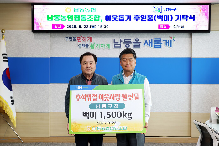[인천=문찬식 기자] 인천 남동구는 남동농업협동조합(조합장 한윤우)로부터 취약계층을 위한 추석맞이 백미 1,500kg(450만 원 상당)을 기탁받았다고 밝혔다.