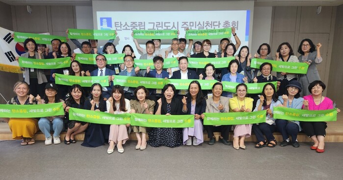 경기 수원시는 탄소중립 그린도시 주민실천단이 23일 수원도로교통관리사업소 회의실에서 총회를 열고, 주민실천단 회칙을 제정했다고 24일 밝혔다.