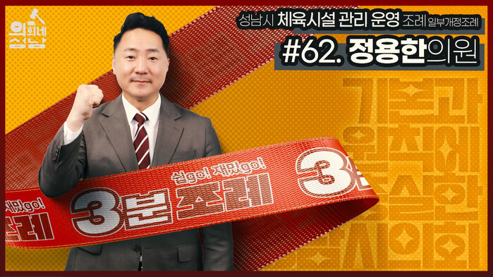 [성남=오왕석 기자] 성남시의회(의장 박광순)는 ‘3분 조례-정용한 의원 편’ 영상을 시의회 공식 SNS에 게시했다.
