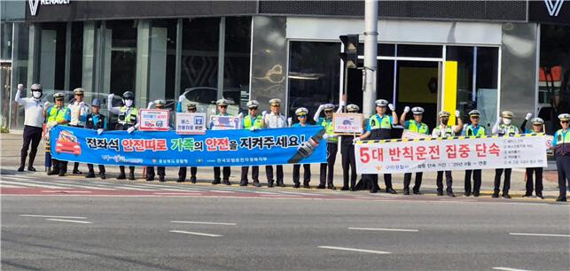 [구미=박병상 기자] 구미경찰서(서장 김동욱)는, 지난 8일 오전 8시 코오롱사거리에서 경찰, 모범운전자연합회 등 총 20여명이 참여한 가운데 ‘5대 반칙 운전’ 근절 합동 캠페인을 실시하였다.