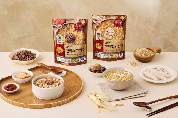| ▲ 고단백 현미죽 2종. (사진=오뚜기 제공) |