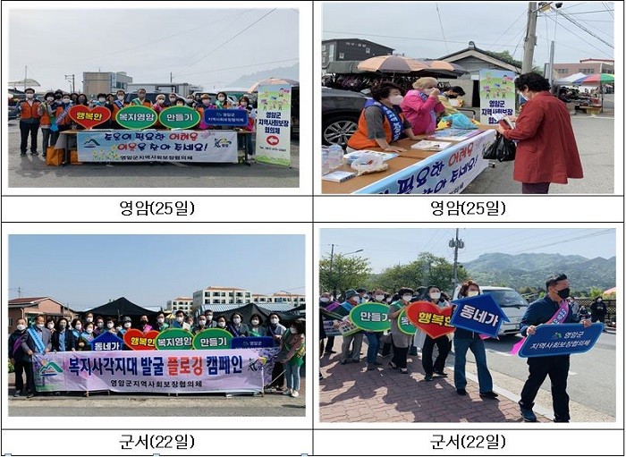 이번 홍보활동을 이끈 김남미 민간위원장은 “협의체 위원들의 수고로 캠페인 활동을 성황리에 마쳐 감사드린다. 앞으로도 지역사회보장협의체도 동네가 행복한 복지영암을 만들기 위해 복지 사각지대 해소에 힘쓰겠다.”고 말했다.