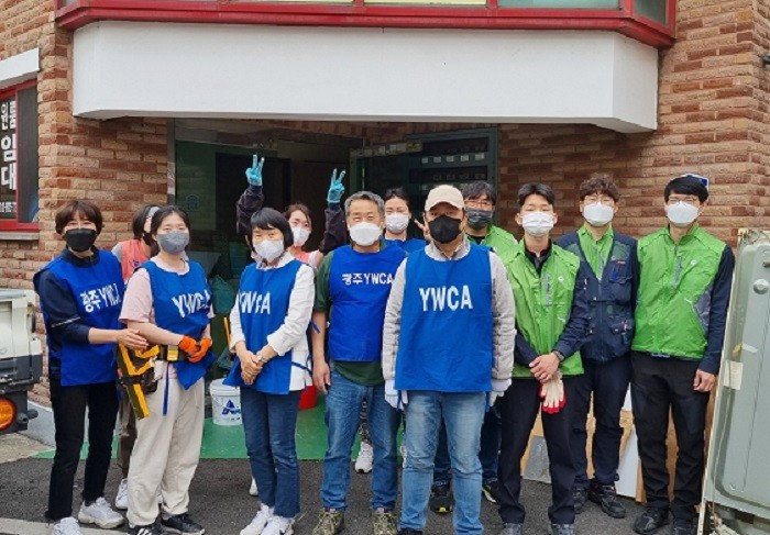| ▲ 광주여성인력개발센터 관계자들, 행복드림 주거환경 개선사업 봉사 기념촬영 / 광주광역시 제공 |