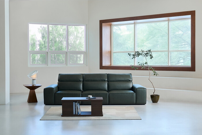 ‘비엔토 전체 통가죽 소파’는 부드러운 곡선과 간결한 실루엣이 돋보이는 미니멀 디자인으로, 형태와 기능의 균형을 고려한 제품이다. 헤드레스트는 높이에 따라 하이백과 로우백 두 가지 형태로 연출할 수 있으며, 높였을 때는 안정감 있는 착석감을, 내렸을 때는 시원하고 개방감 있는 분위기를 제공한다. 팔걸이는 자연스럽게 곡선 처리된 필로우 타입의 데이베드형 구조로 설계되어, 기대었을 때 더욱 편안한 휴식을 제공한다.