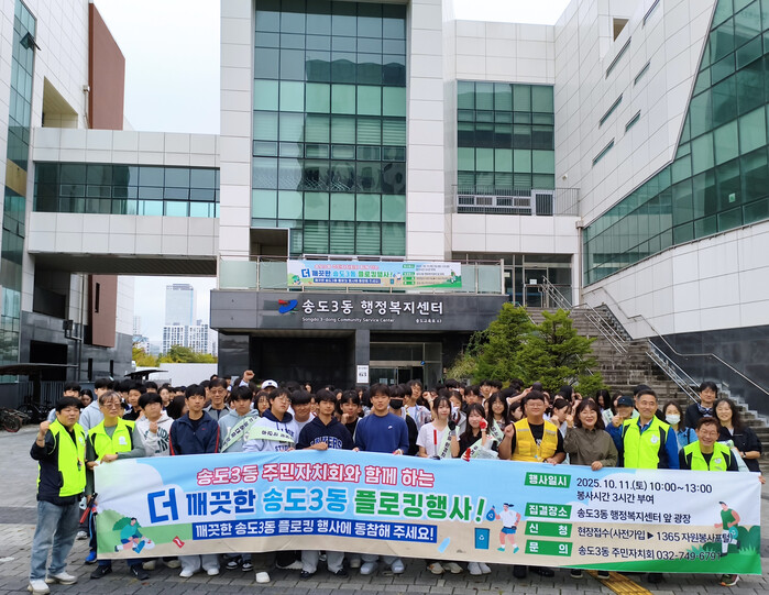 [인천=문찬식 기자] 인천 연수구 송도3동 주민자치회(회장 허성무)는 지난 11일 능허대중학교 학생들과 주민이 함께 참여한 ‘제2회 더 깨끗한 쓰담걷기(플로킹)’ 행사를 진행했다.