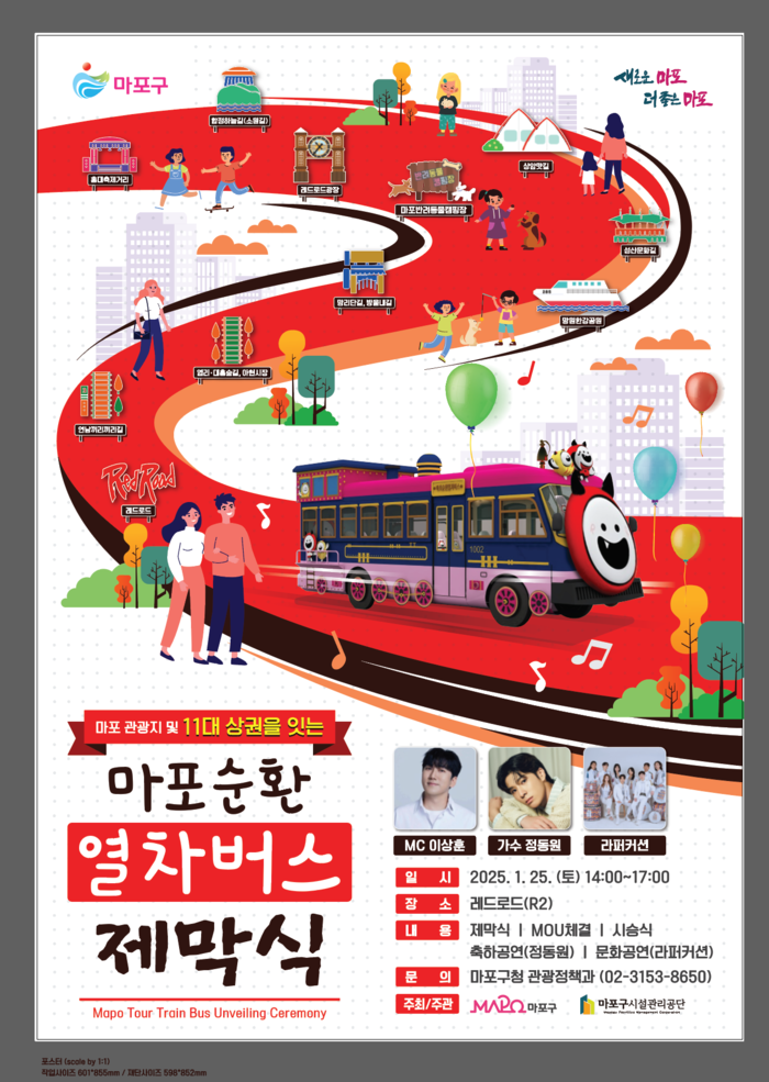 [시민일보 = 문민호 기자] 서울 마포구(구청장 박강수)의 민선 8기 공약사업인 ‘마포순환열차버스’가 오는 25일 오후 2시 레드로드 R2에서 제막식과 시승식을 갖고 첫 운행을 시작한다.