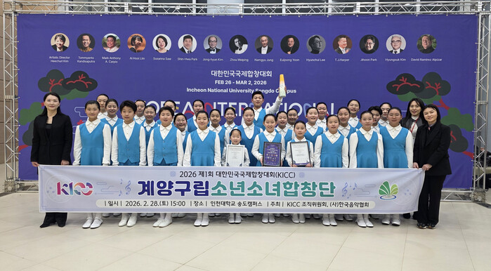 [인천=문찬식 기자] 인천시 계양구립소년소녀합창단이 지난 2월 26일부터 3월 2일까지 인천 송도에서 개최된 ‘2026 대한민국국제합창대회(KICC)’에 참가해 어린이부(Children's Choir) 우승을 차지했다.