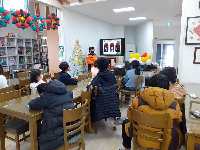 | ▲ 강진소방서, 지역아동센터 이용 학생 대상 소방안전 교육 / 강진소방서 제공 |