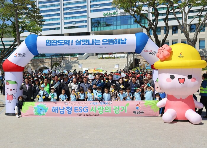 [해남=정찬남 기자] 전남 해남군은 지난 26일 해남군과 관내 23개 기관단체 등 500여 명이 참여한 가운데 '군민과 함께하는 사랑의 발자국, 해남형 ESG 사랑의 걷기' 행사를 진행했다.