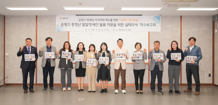 [시민일보 = 이대우 기자] 서울 은평구의회(의장 송영창) 의원연구단체 ‘은평구 장애인 복지 사각지대 해소를 위한 나란히 연구모임’이 최근 은평구의회 정책세미나실에서 ‘중장년 발달장애인 돌봄 지원을 위한 실태조사 연구용역’ 착수보고회를 개최했다.