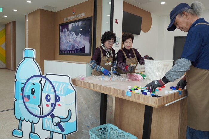 | ▲ 해남군자원순환복합센터 재활용품교환센터 분리작업 / 해남군 제공 |