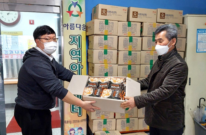 | ▲ <좌측부터 은혜푸드뱅크 전담 사회복지사 홍기욱, 아름다운지역아동센터 대표 김영진. 미트리 제공> |